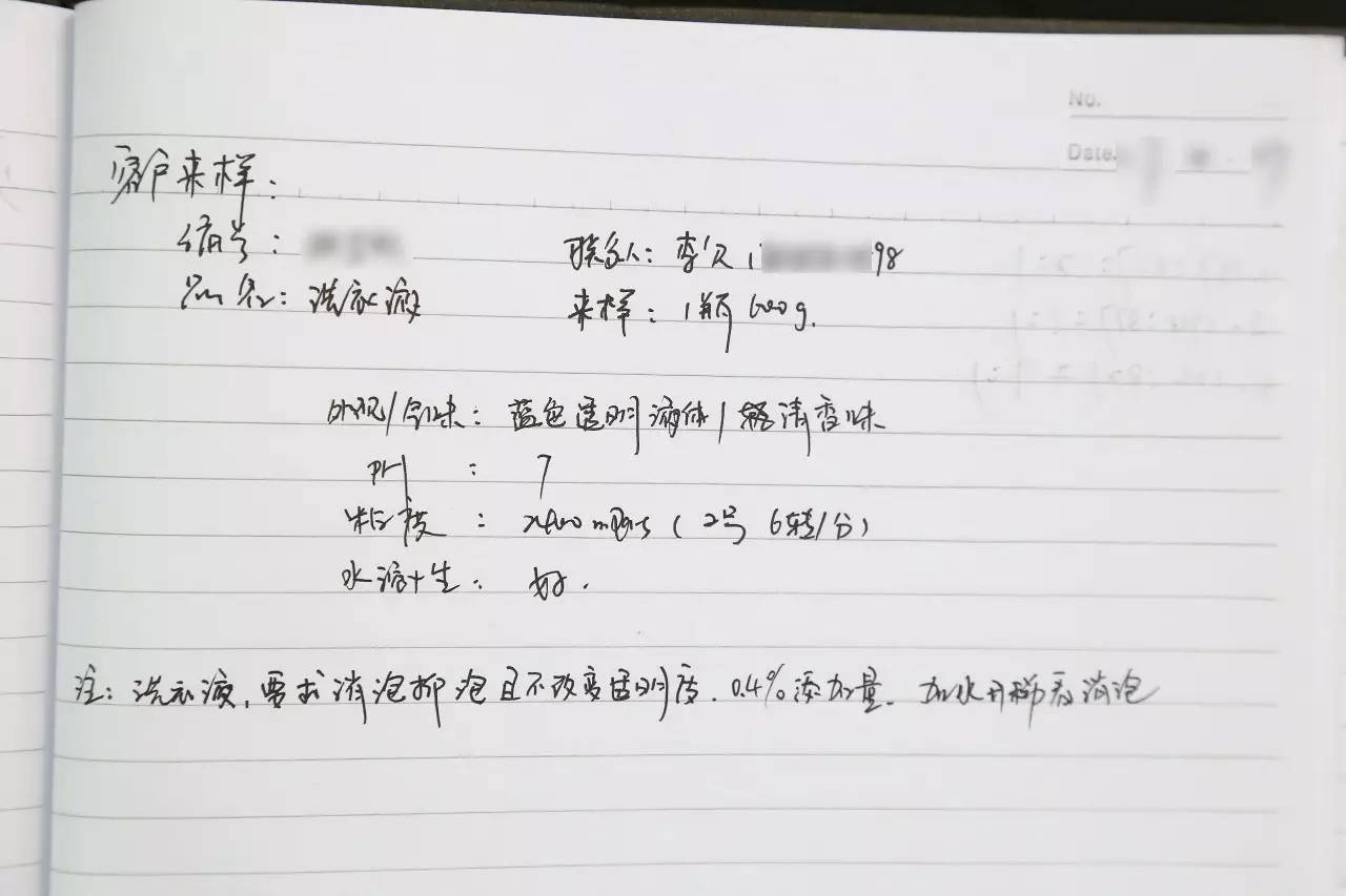 李工將通過來樣原液與消泡劑的混合,觀測相溶性效果;通過開稀后的洗衣液添加消泡劑后的消泡實驗,觀測各款消泡劑的消泡抑泡性能。最終定制最合適客戶的產品。