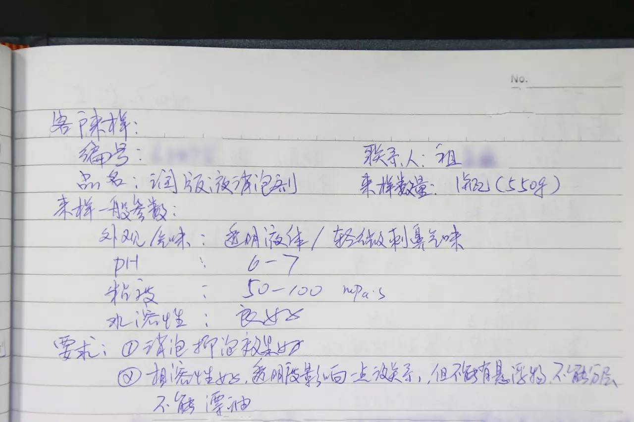 2017年5月23日,江西宜昌某科技公司的祖先生把一瓶潤版液寄到了中聯邦實驗室。泡沫令潤版液失去了阻止油墨向空白地方浸潤的基本功能,其客戶被迫停產。祖先生苦尋幫助無果,請求中聯邦為其定制合適潤版液用消泡劑消泡配方!