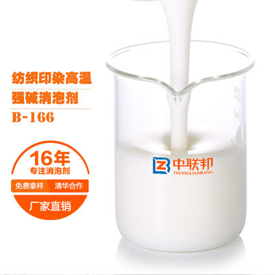 中聯(lián)邦研發(fā)生產(chǎn)的紡織印染高溫強(qiáng)堿消泡劑是最新的研究成果,其突出特點(diǎn)是在中高溫強(qiáng)堿條件下能迅 速消泡,持久抑泡。具有優(yōu)異的消泡、抑泡性能,品質(zhì)已趕上和超過一些國際著名品牌。此外在高堿度的化學(xué)清洗中使用,比普通有機(jī)硅消泡劑具有長得多的抑 泡時間。本品最大特點(diǎn):高含量、溶水性好、不漂油、耐強(qiáng)酸堿、耐高溫60~130℃,在非離子和陰離子的表面活性劑系統(tǒng)中均能顯示出優(yōu)異的抑泡持久性和良好的消泡性。